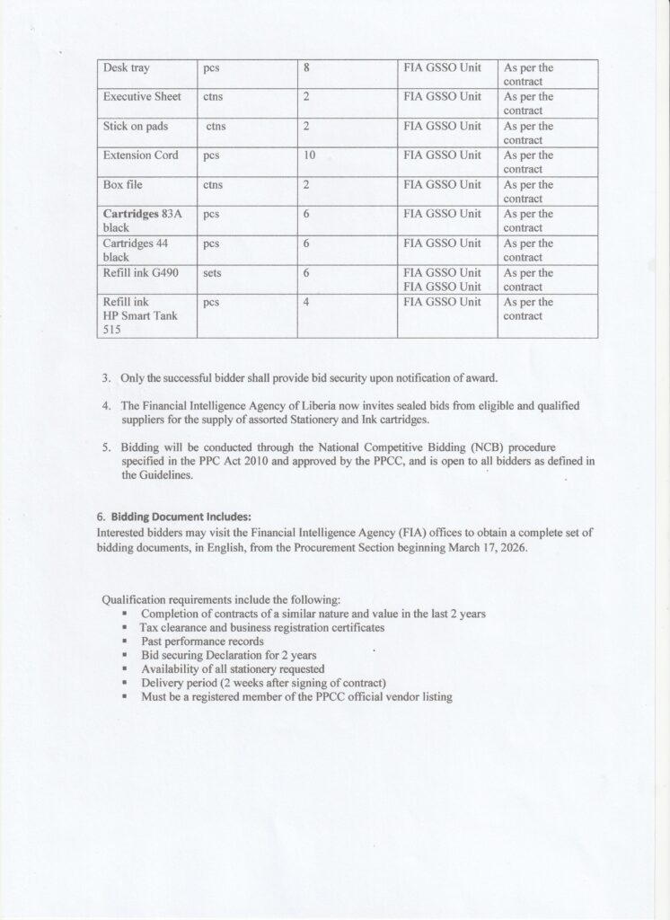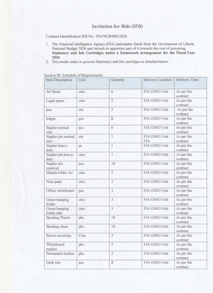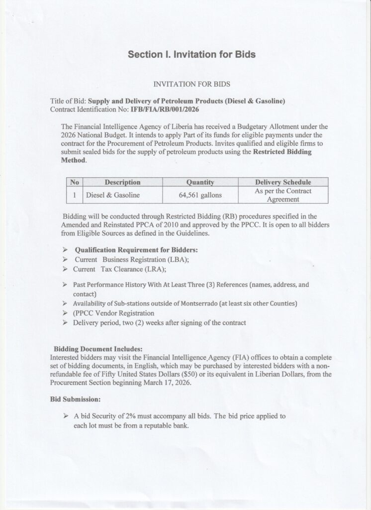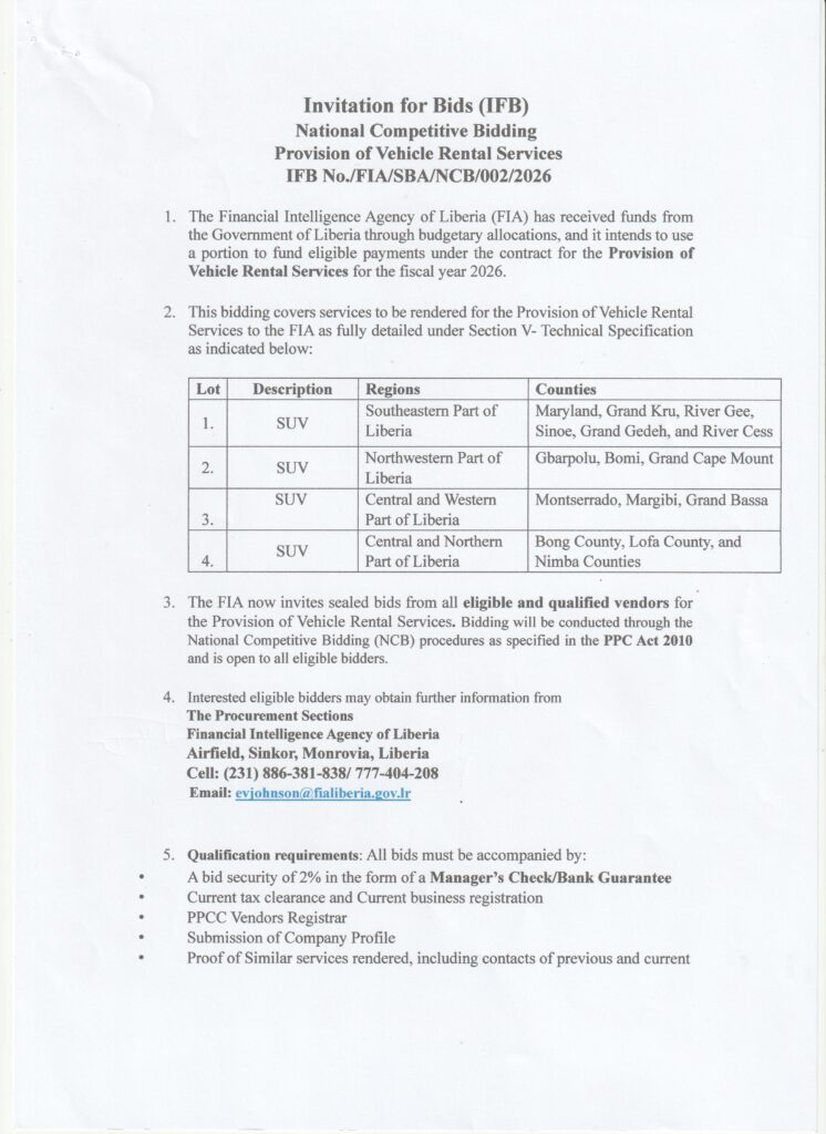 Invitation for Bids (IFB)National Competitive Bidding Provision of Vehicle Rental Services IFB NO.\FIA\SBA\NCB\002\2026 Section 1. Invitation for Bids Invitation for Bids (IFB) Post published:17 March 2026